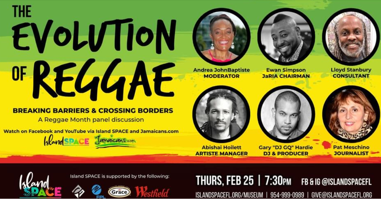 Join Island SPACE Caribbean Museum for “The EVOLUTION of REGGAE: Breaking Barriers and Crossing Borders,” a Reggae Month panel discussion. Reggae has influenced genres including Hip Hop, Reggaeton and Afrobeats. Our panel of experts will dissect the fusion and morphing of reggae, and discuss the pros and cons.