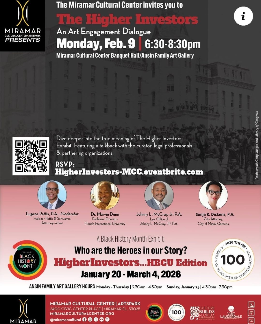 City of Miami Gardens City Attorney, Sonja Dickens, joins an esteemed panel of speakers for a deep dive into the true meaning of the Higher Investors Art Exhibit. You are invited to this free reception and Art Engagement Dialogue, featuring a talkback with the curator, legal professionals & partnering organizations.