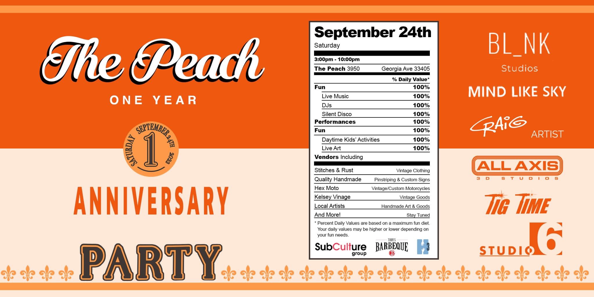 Help us celebrate our 1 Year Anniversary with a bang. Experience tons of new vendors, live music, DJs, performances, and more!