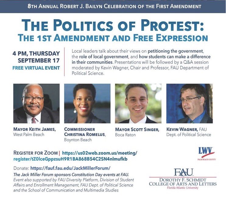Join distinguished panelists as we discuss the Politics of Protest: The 1st Amendment & Free Expression in honor of #ConstitutionDay