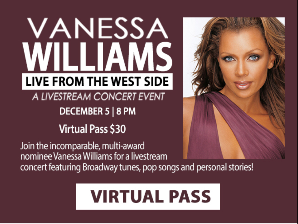 Join one of the most respected and multi-faceted performers in the entertainment industry for an incredible livestream concert featuring Broadway tunes, pop songs and personal stories! Vanessa Williams has sold millions of records worldwide, and achieved numerous #1 and Top 10 hits on various Billboard Album and singles charts in pop, dance, R&B, adult contemporary, holiday, Latin, gospel and jazz.