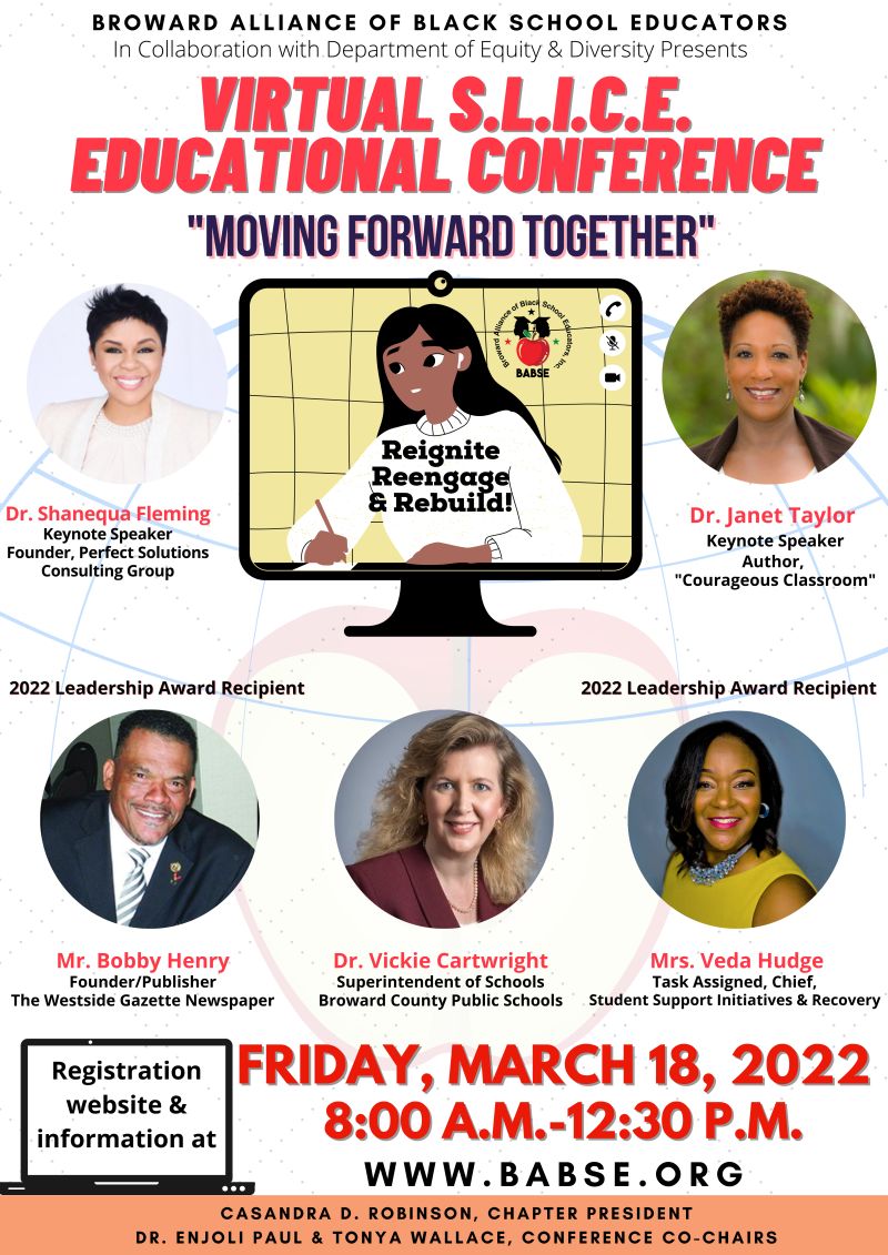 The Broward Alliance of Black School Educators, in collaboration with the Broward Schools Equity and Diversity Department, is busy planning the best virtual educational conference of the year. This year’s BABSE Conference, known as S.L.I.C.E., Social and Emotional Learning, Leadership, Instruction and Curriculum, Community and Equity and Diversity Conference is scheduled for Friday, March 18, 2022, from 8:00AM until 12:30PM, via HOPIN.