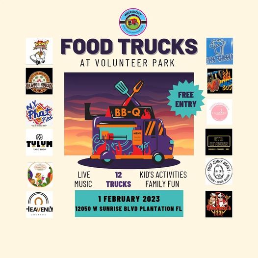 Join us this first Wednesday of February for fantastic food from some of South Florida’s Finest Gourmet Food Trucks!!!