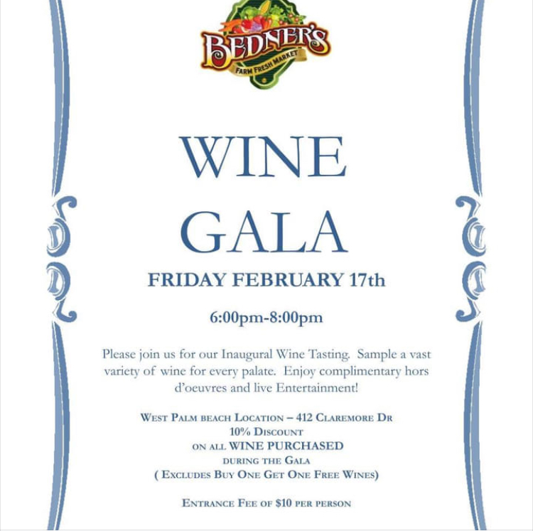 Join us on Friday, February 17th for our Inaugural West Palm Beach Wine Gala. Only at our West Palm Beach Location! Entrance fee of $10 per person. 6:00pm – 8:00pm includes snacks, wine tasting and entertainment.