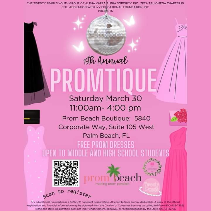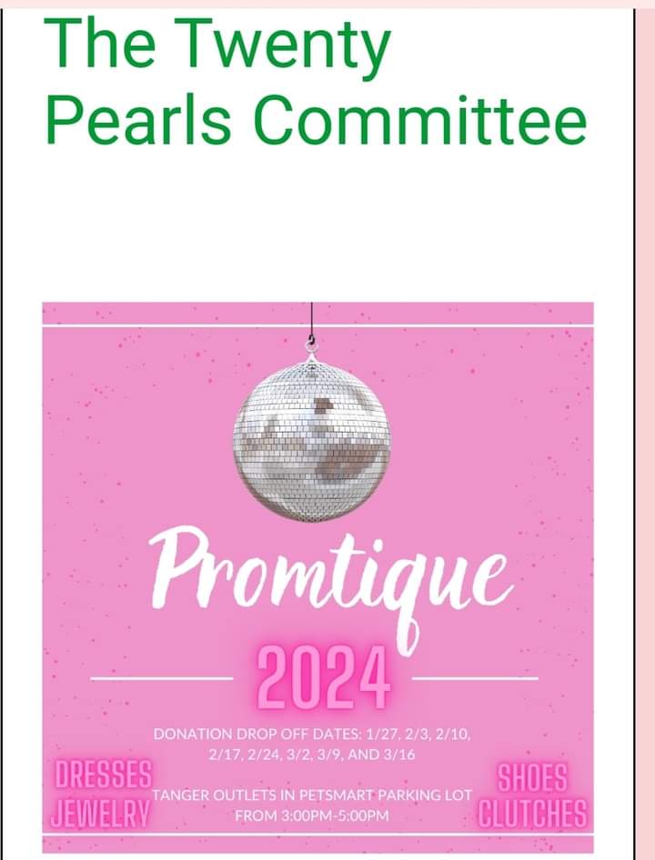 Calling all middle and high school young ladies! Our Twenty Pearls youth group signature event Promtique is back for its 15th year. No appointments are required but all attendees are highly encouraged to register. 💕🤍 🪩 https://www.eventbrite.com/e/promtique-tickets-851169600187 🪩 Please direct all questions to zto20pearls@gmail.com #AKAzto #TwentyPearls