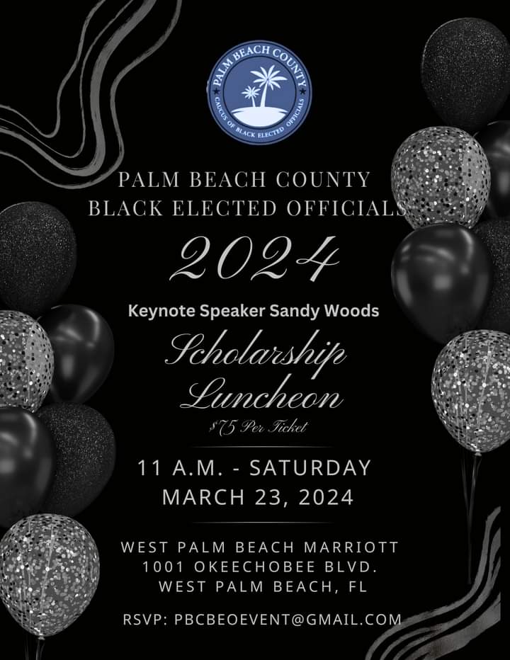 Please note that the date of this event has been changed to March 23, 2024. Please let me know if you have any questions. Additionally, please share and spread the word, but tickets and tables are going fast. https://www.eventbrite.com/e/palm-beach-county-black-elected-officials-scholarship-luncheon-registration-782553788447