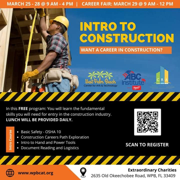 We are proud to announce 📣 that registration is open for our 4th Cohort of our Pre-Construction program. The program will start on Monday, March 25 at 9:00 am. We are looking for adults who are serious about learning and having a career in the construction industry. If this is you, please click the link to register: https://form.jotform.com/232285899506066 #preconstructionprogram #constructionindustry #abci #wpbcat #careerdevelopment #jobtraining #workforcedevelopment @followers