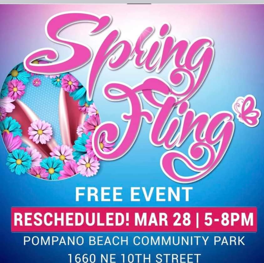 Hey Shugas, Spread the word! Spring Fling at Pompano Community Park 🐰🥚 New date is Thursday, March 28th from 5-8 PM for FREE! Learn more at https://parks.pompanobeachfl.gov/events/spring-fling. #DetailsBelow #Like #Share #Repost #SomethingWonderfulIsAlwaysHappening #PompanoBeach #StrongerTogether #PompanoUnited