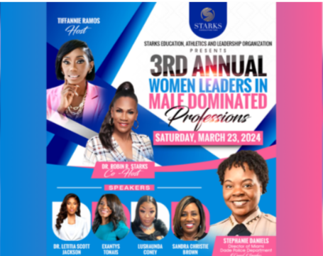The 3rd Annual Women Leaders in Male-Dominated Professionals Panel Discussion has been announced. This exciting upcoming event will feature a panel of women speakers in fields that are “ruled” by men, showcasing the talent and mindset of women in each respective field being represented. Dr. Robin R. Starks and her organization, Starks Education, Athletics and Leadership Organization, are proud to present this event for the third year running. Dr. Starks is also CEO of Starks Consulting Firm, a premier South Florida business consulting firm providing clients with services such as project management, corporate strategy, and business development planning.