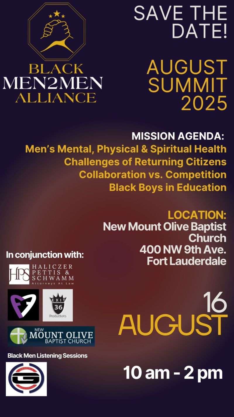Brothers, your voice matters. Join the Black Men 2 Men Alliance Listening Sessions and the August Summit — a space built by you for you to share real stories, real struggles, and real solutions. 🗣️ Speak truth. 🧠 Learn from each other. 🤝 Build stronger bonds. Step up. Show up. Be heard. |